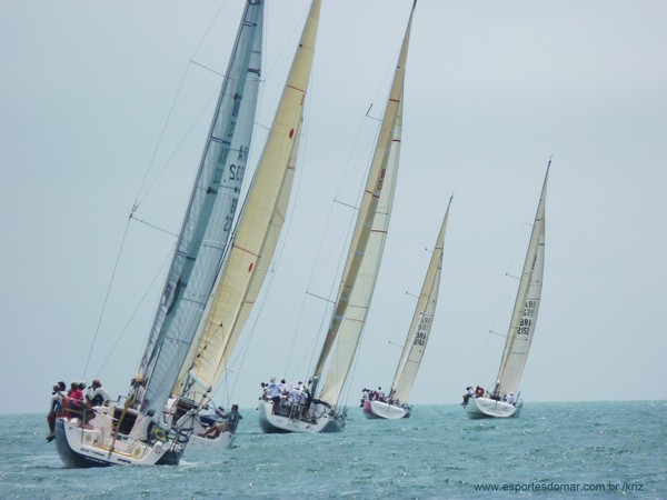 Largamos bem, na frente dos demais. Na tripulação estava Paulinho Ribeiro no leme e tática, Marquito nas escotas, Guedes na secretaria e eu na proa e só nós 4. Tivemos que nos virar em 2 nas manobras de jibe.